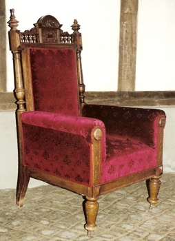 hoher Sessel, Gründerzeit, ca 1880, mit Mohair neu bezogen