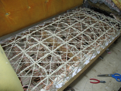 komplette Federnschnürung eines 30er Jahre Clubsofas