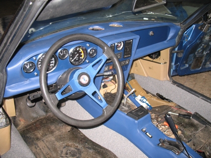beziehen der Mittelkonsole sowie des Armaturenbrettes eines FIAT Spider mit blauem Leder