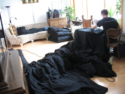 Foto:vernähen von ca 400qm Molton für eine Wandbespannung eines Kinosaales