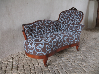 Recamiere, ca 1880, neu bezogen, Knopfheftung in der Rücklehne